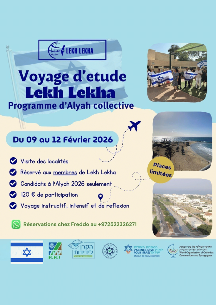 Un voyage d’étude exceptionnel, organisé par Lekh Lekha, pour des familles décidés à faire la Alya courant 2026.